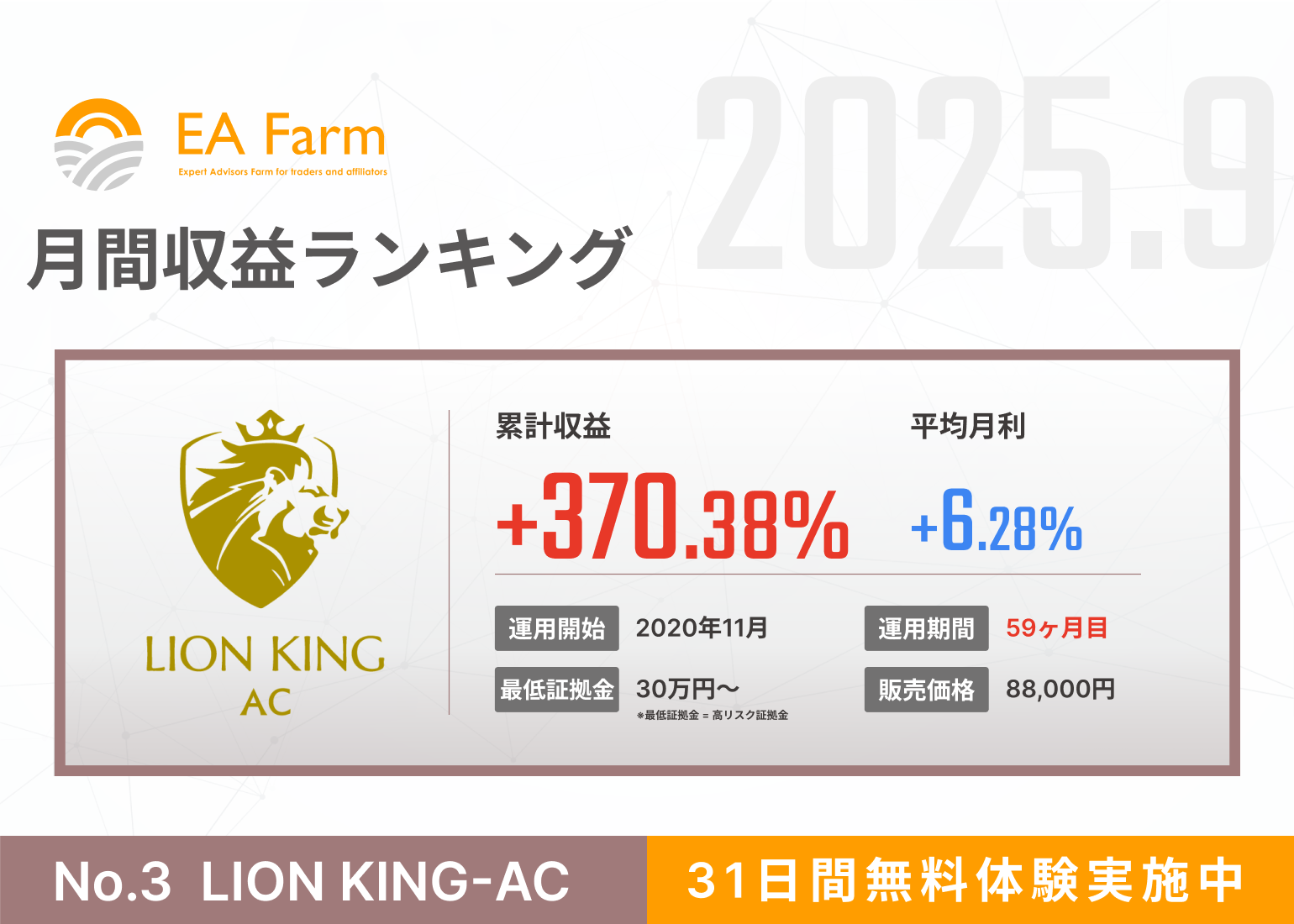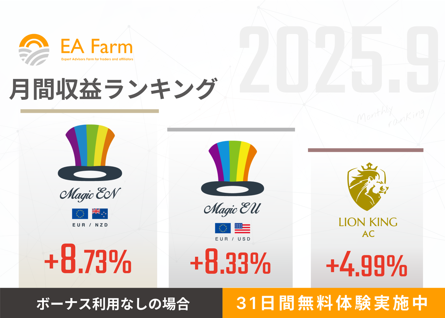 2025年9月度の収益ランキングを報告いたします。