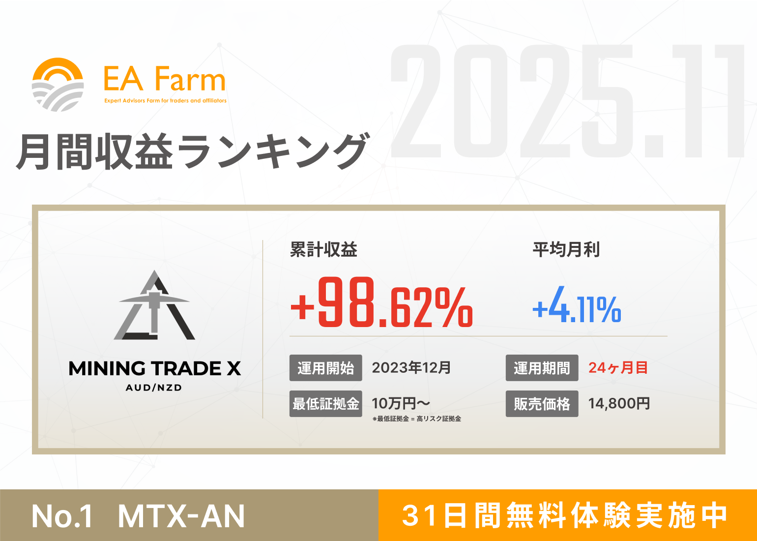 2025年11月は『月利+11.53%』を記録しました。